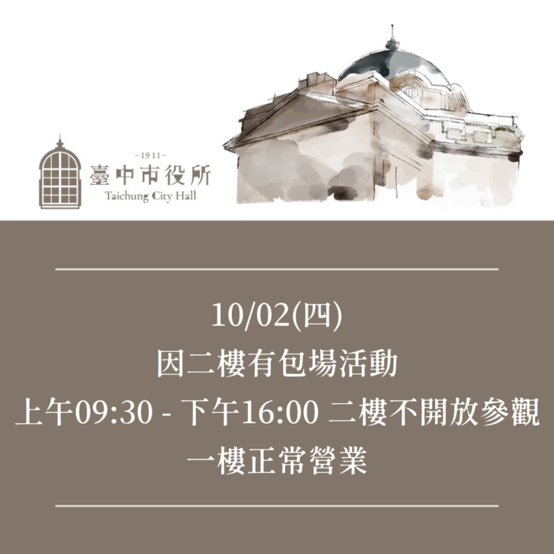 因二樓有包場活動,上午09:30 – 下午16:00 二樓不開放參觀,一樓正常營業